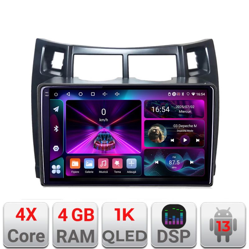 Navigatie Toyota Yaris 2008-2011 A-YARIS08 4+64 InCell Display 1K Android Waze USB Navigatie Internet Youtube Radio