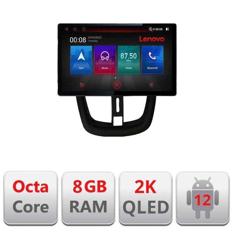 Navigatie Peugeot 207 N-PE01 ecran 13" 2K 8+128 Android Waze USB Navigatie 4G 360 Toslink Youtube Radio KIT-PE0