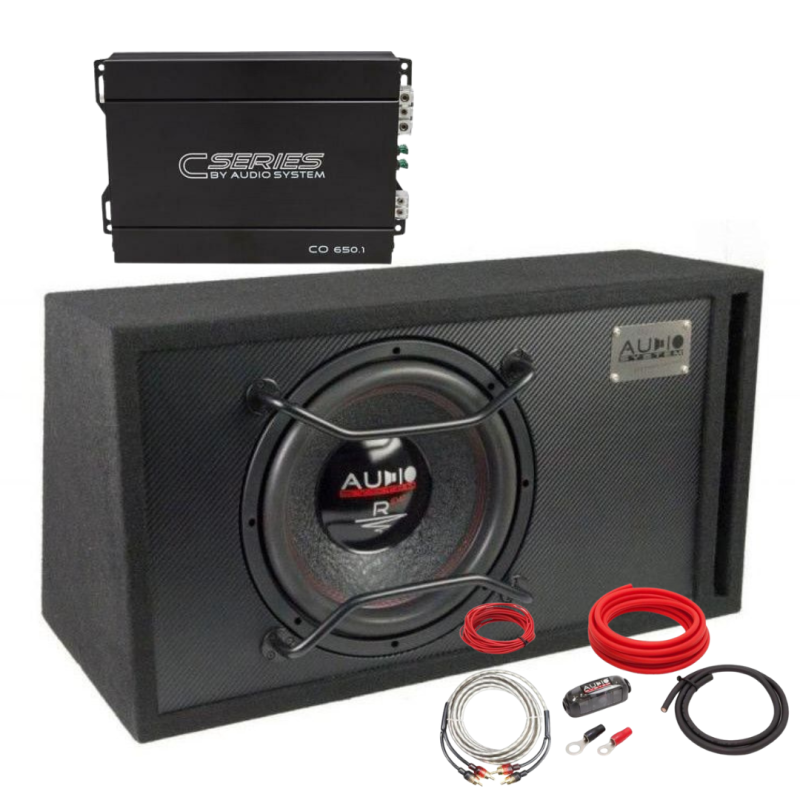 Pachetul contine un subwoofer pasiv BR-R12 EVO cu un amplificator monobloc CO-650.1 D si cablajul pentru alimentare Z-PCSC 20 din cupru pentru eficienta maxima, de la Audio System German Sound !