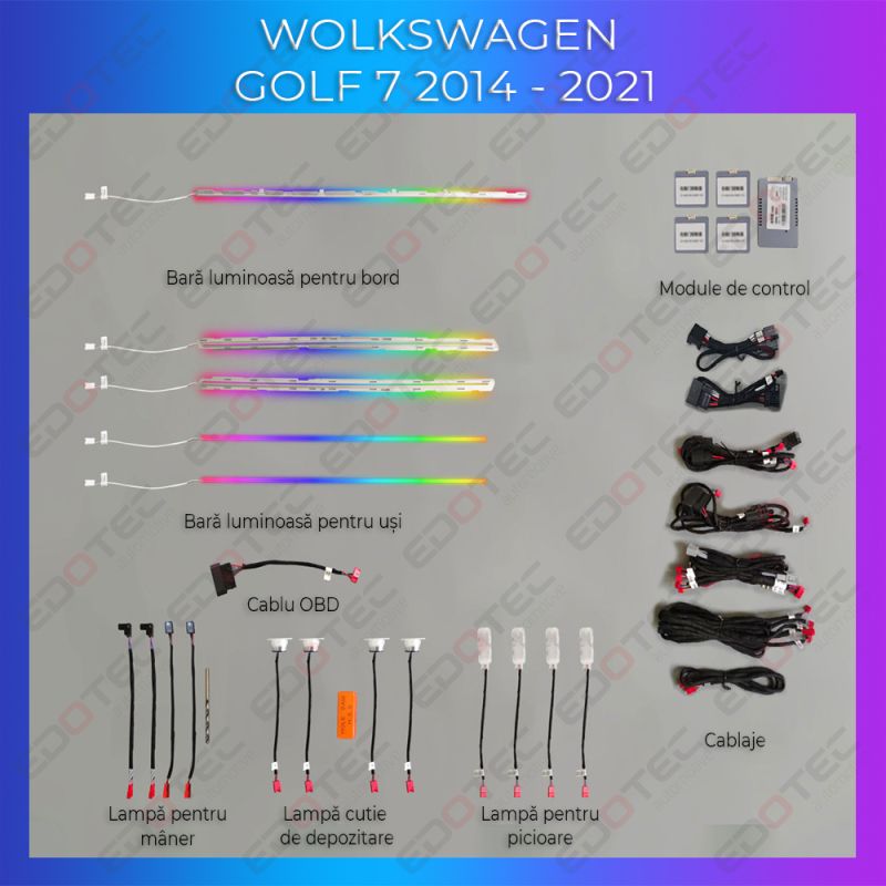 Lumini ambientale VW Golf 7 dedicat control din sistemul original sau telefon