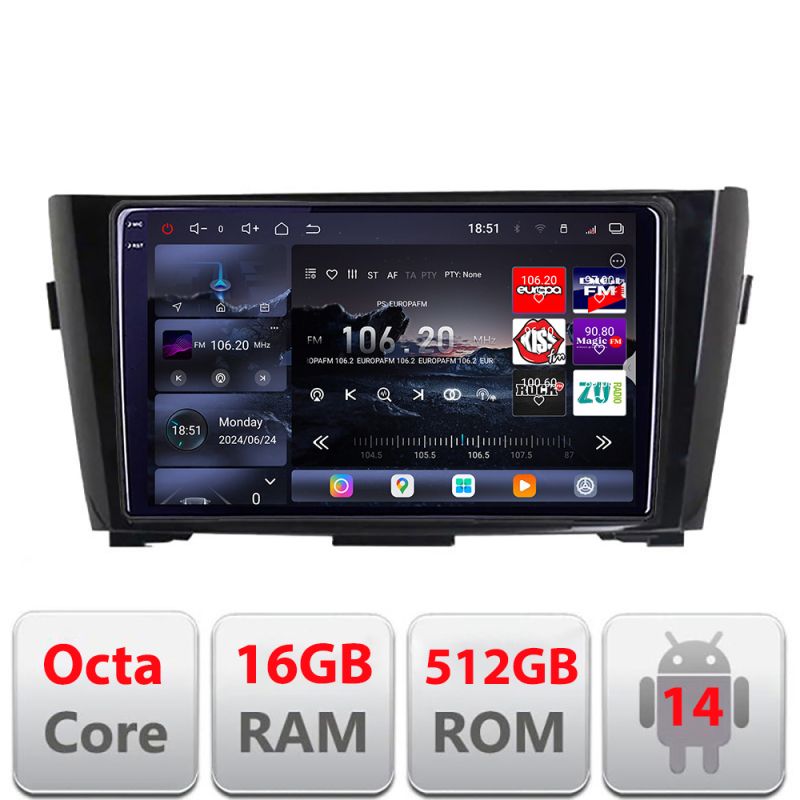 Navigatie Nissan Qashqai X-Trail 2013-2018 Edotec Kit-353 8 core QLED 2K 16+512GB 360 Android Waze USB Navigatie Internet Youtube Radio