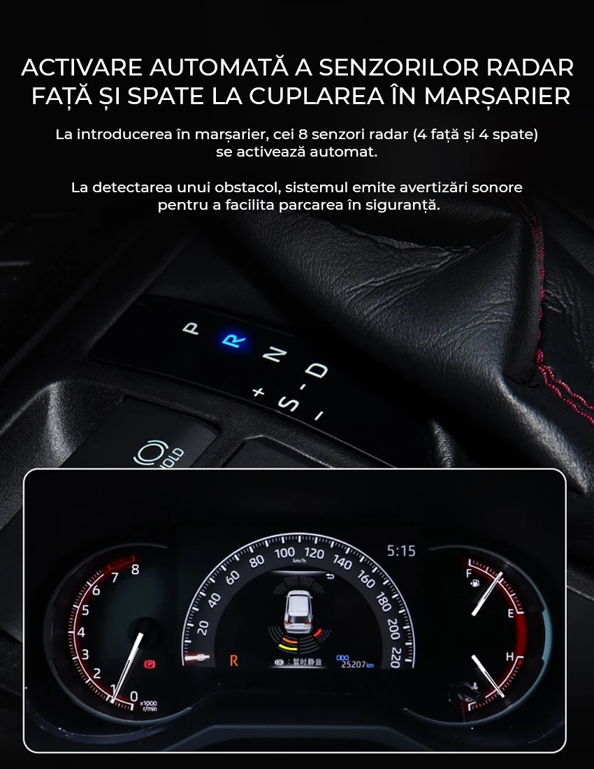 Senzori de parcare dedicati Toyota 2023-2025 Toyota Fortuner 2016-2022 Land Cruiser 2015-2019 Corolla 2018-2022 Prado 150 fata si spate 8 senzori integrare OEM codare automata senzibilitate reglabila PTS-TOYOTA-5