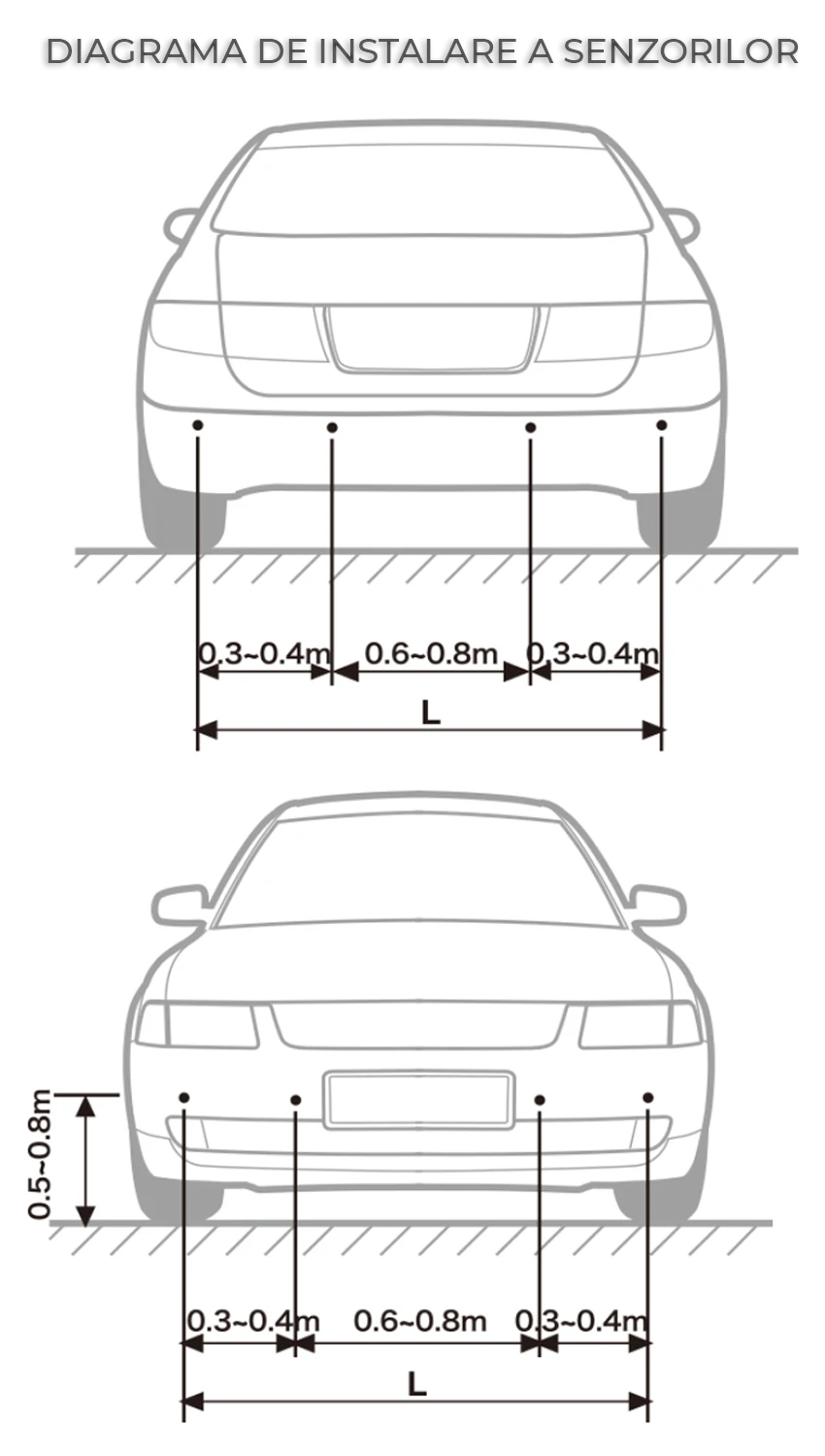 ✔️ Set complet: 8 senzori (față + spate)