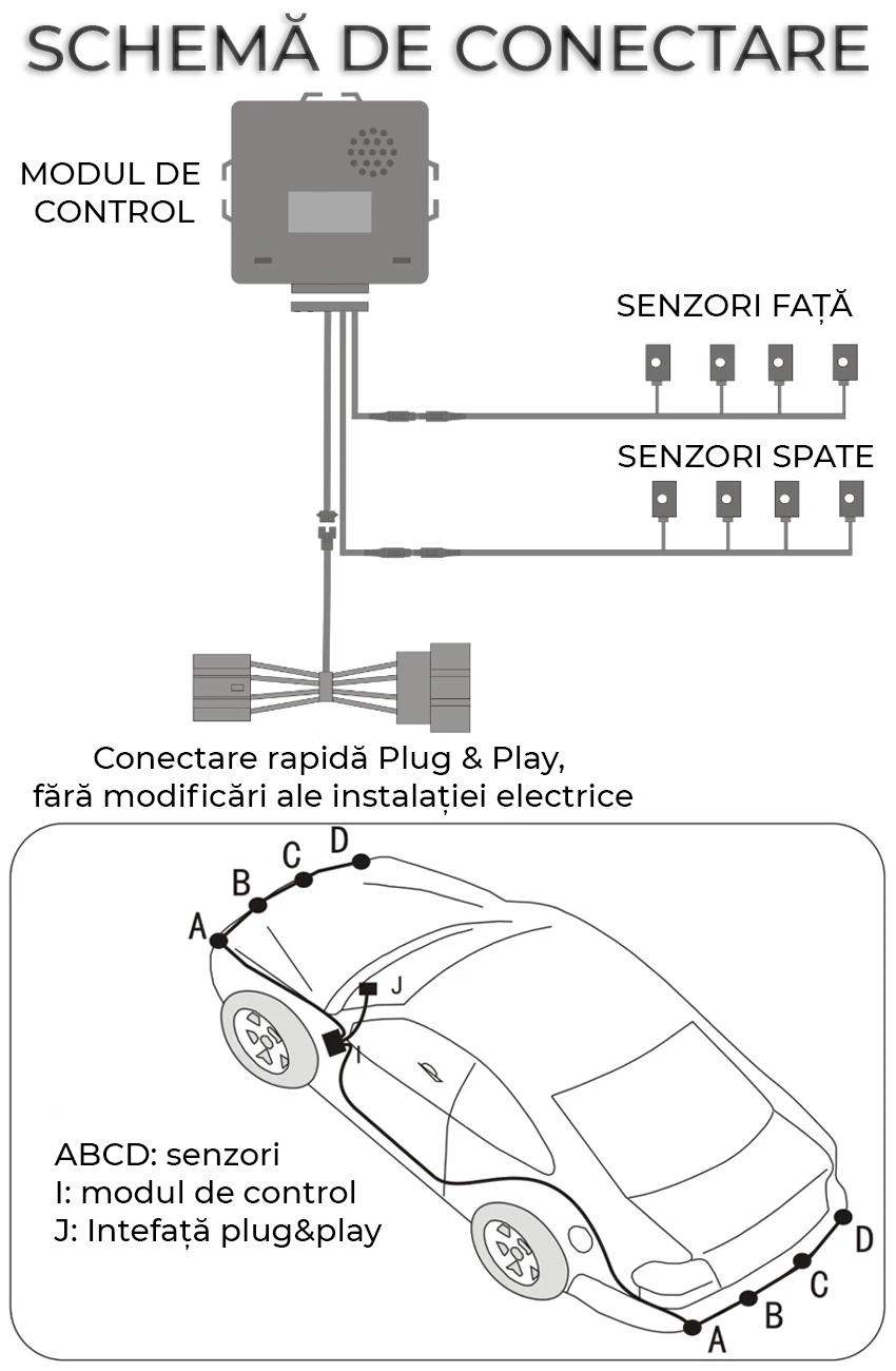 ✔️ Frecvență senzori: 40 KHz – precizie ridicată