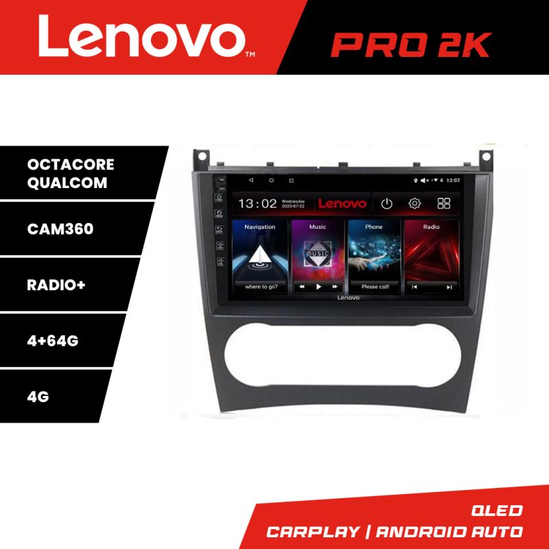 Navigatie Mercedes Clasa C W203 facelift Lenovo Kit-093 cu Android Radio Bluetooth Internet 8 core QLED 2K 4+64 360GB