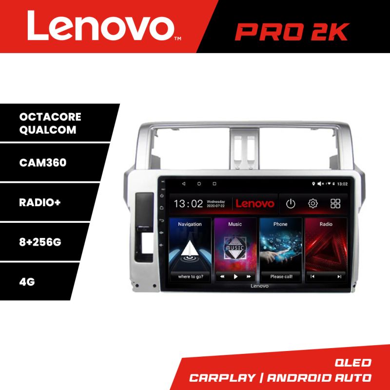 Navigatie Toyota Landcruiser J150 Prado 2014-2017 Lenovo Kit-065 8 core QLED 2K 8+256 360 Android Waze USB Navigatie Internet Youtube Radio