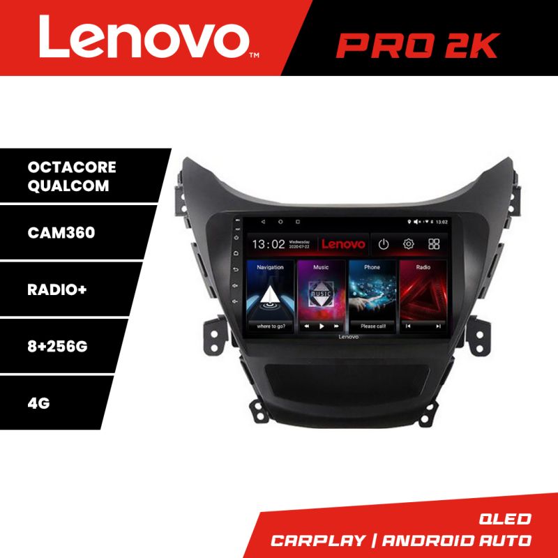 Navigatie Hyundai Elantra 2011-2013 Lenovo Kit-092 8 core QLED 2K 8+256 360 Android Waze USB Navigatie Internet Youtube Radio