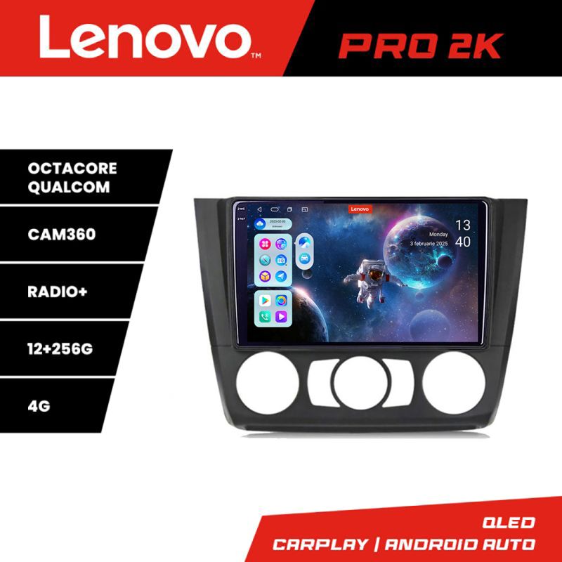 Navigatie BMW Seria 1 E87 2007-2011 clima manuala Lenovo Kit-bmw117-manual 8 core QLED 2K 12+256 360 Android Waze USB Navigatie Internet Youtub
