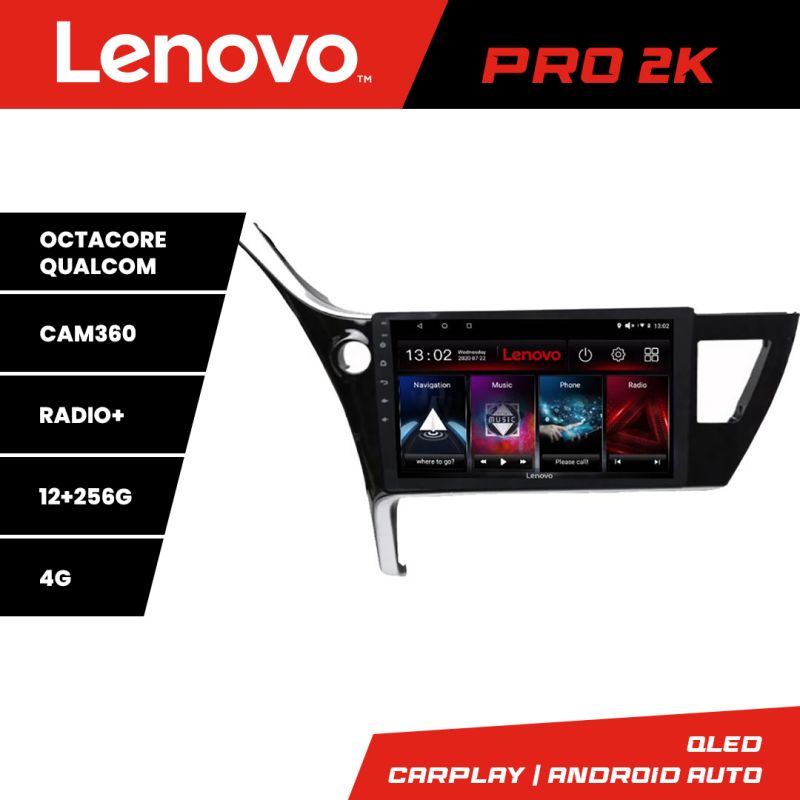 Navigatie Toyota Corolla 2017- Lenovo Kit-COROLLA17 8 core QLED 2K 12+256 360 Android Waze USB Navigatie Internet Youtube Radio