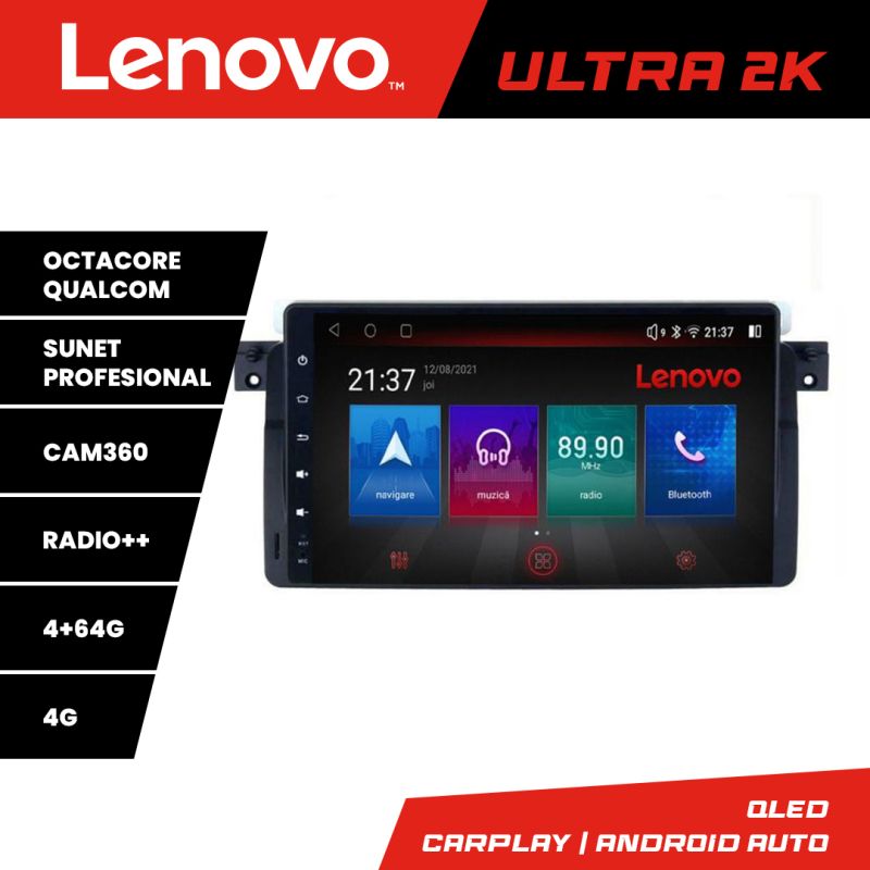 Navigatie BMW Seria 3 E46 Lenovo Kit-052 8 core QLED Qualcomm 4+64 360 Android Waze USB Navigatie Internet Youtube Radio
