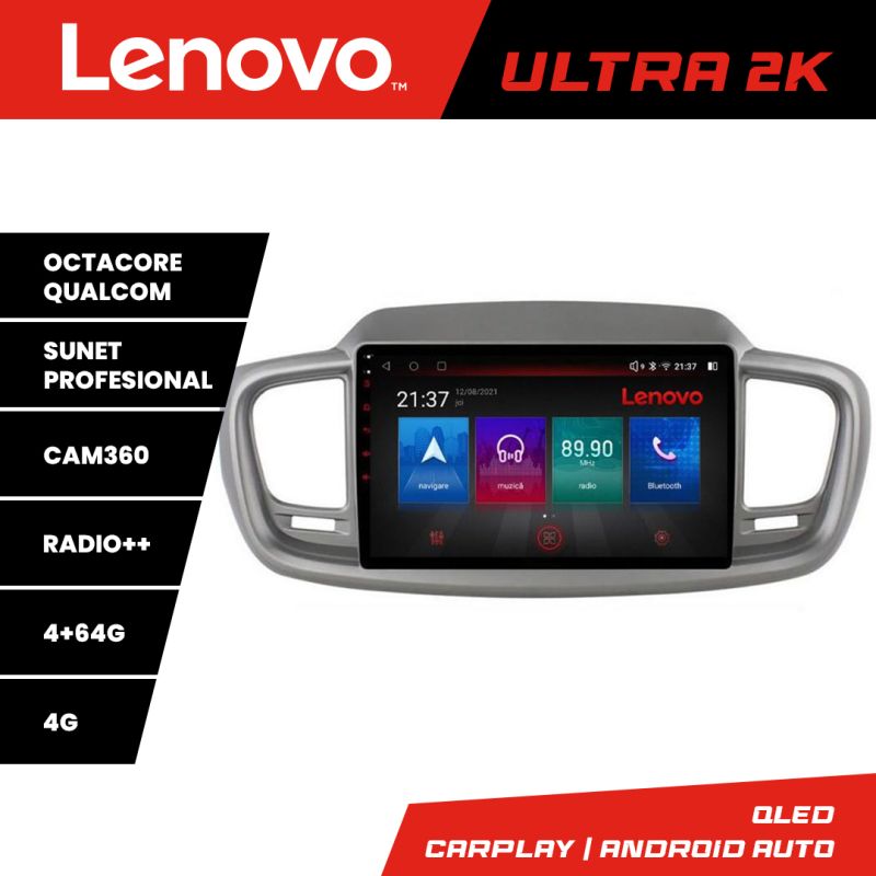 Navigatie Kia Sorento 2015-2018 Lenovo Kit-6528 8 core QLED Qualcomm 4+64 360 Android Waze USB Navigatie Internet Youtube Radio