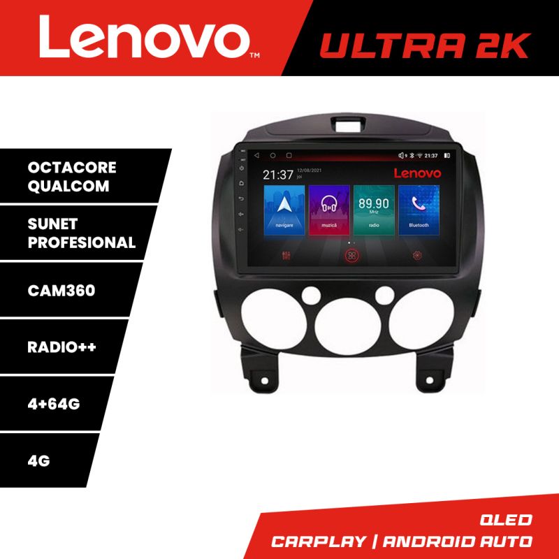 Navigatie Mazda 2 2007-2013 Android radio gps internet 8 core QLED Qualcomm 4+64 360 Lenovo