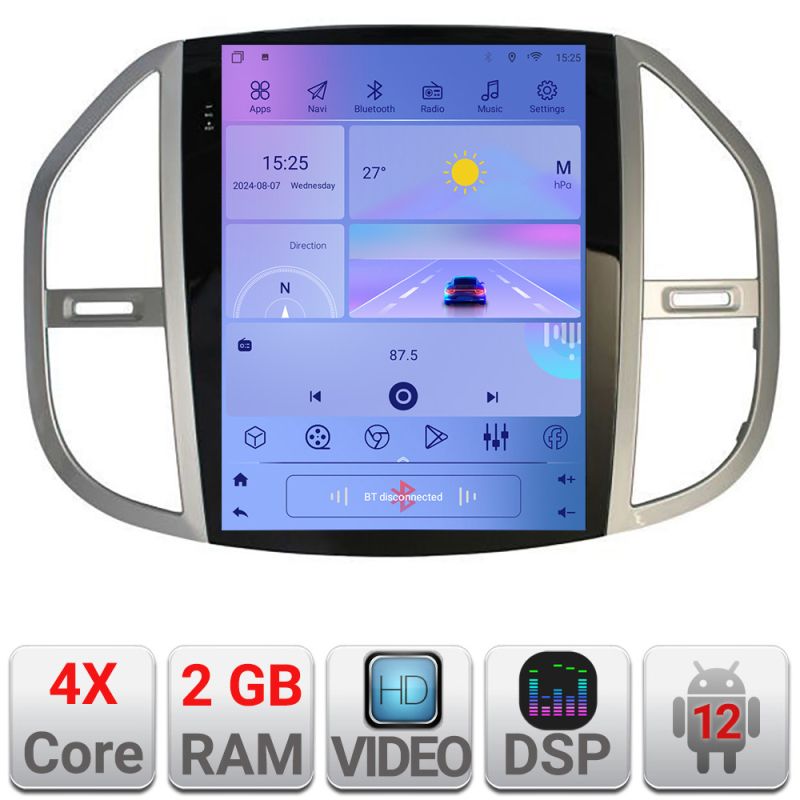 Navigatie Mercedes Vito 2016- tip tesla radio gps internet 4 Core carplay android auto 2+32 kit-tesla-068+EDT-E220