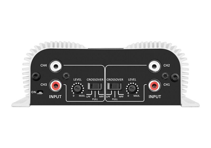| Maximum power | @ 13,8 VDC - 2 OHMS - 400 W RMS (4 x 100W RMS) @ 13,8 VDC - 4 OHMS - 252 W RMS (4 x 63W RMS) Bridged @ 13,8 VDC - 4 OHMS - 400W RMS (2 x 200W RMS) |