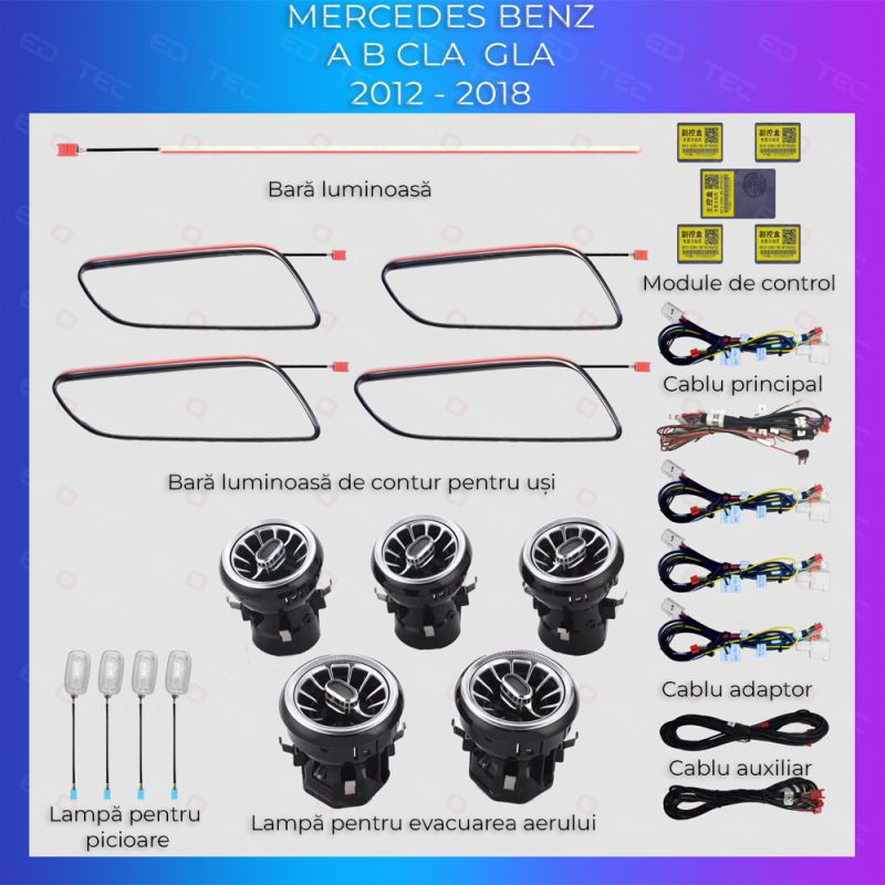 Lumini ambientale Mercedes W176-01+02 2012-2018 dedicat set complet control telefon sau sistem original