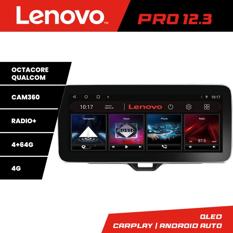 Navigatie Toyota Yaris 2020- Lenovo PRO 4+64 12.3 inch qled android 4G DSP gps internet kit-yaris2020