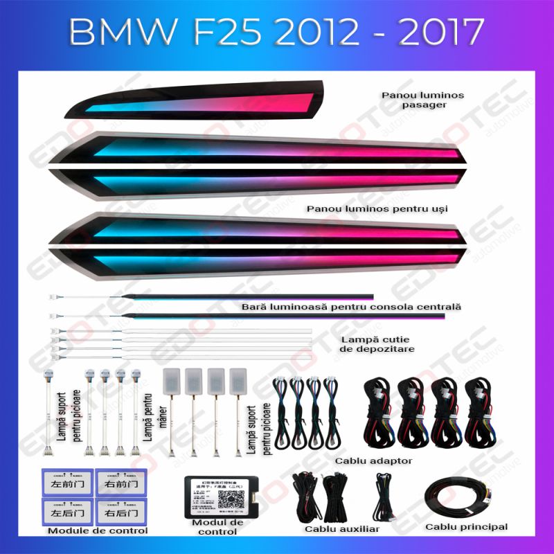 Lumini ambientale BMW X3 X4 (F25 F26) 2012 - 2017 model cu trimuri dedicat set complet control telefon sau sistem original
