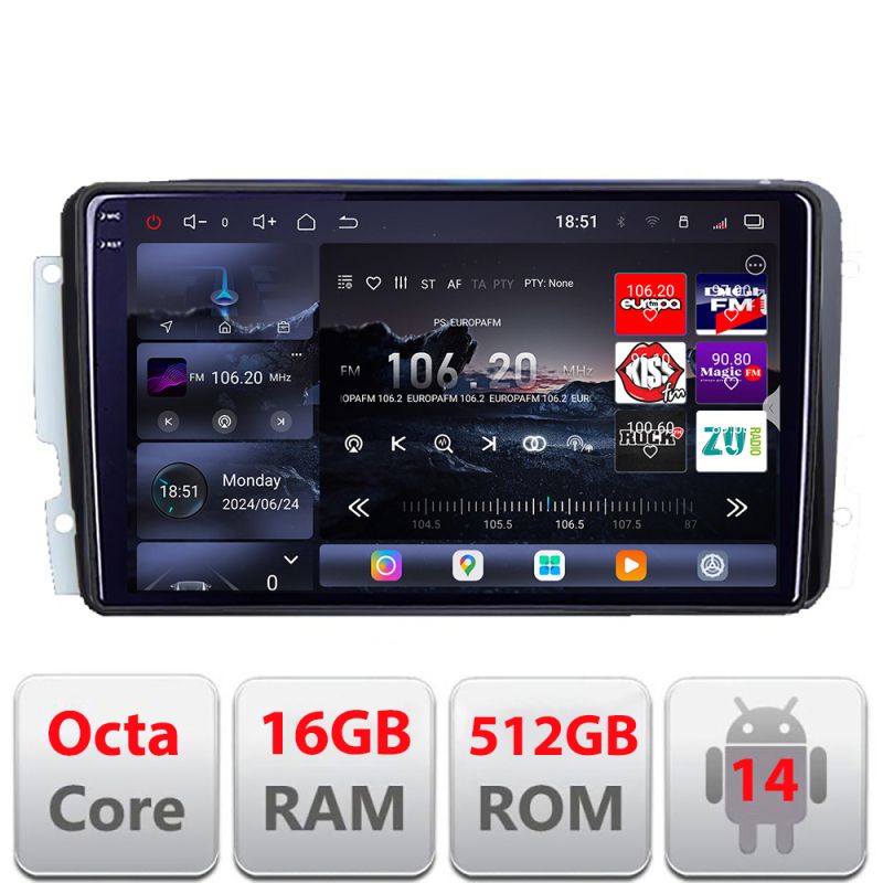 Navigatie Mercedes C 2001-2004 CLK G 2004-2006 Edotec Kit-171 8 core QLED 2K 16+512GB 360 Android Waze USB Navigatie Internet Youtube Radio