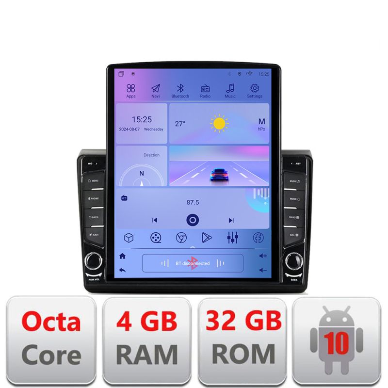 Android 10 ∙ Octa Core ∙ 4GB RAM+32GB ROM ∙ 4G și WiFi ∙ GPS ∙ intrare de cameră 360° ∙ intrare USB cameră DVR ∙ ecran uriaș vertical de 9.7”